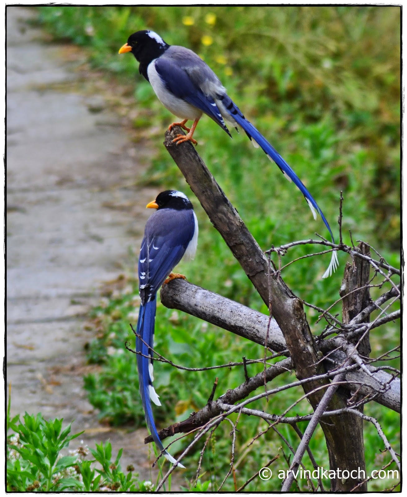 [Update 26/04/15 - During my present visit to my native village in Himachal, a yellow-billed magpie become my friend and he started following me where ever I was going with my camera. I too enjoyed his company and clicked many of his pictures.
